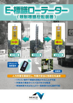 - 人力で反転させていた作業を、リモコン操作により自動反転 させることで、交通規制員の労力削減及び作業時間の短縮が可能で、交通規制作業の業務効率化を計れます。